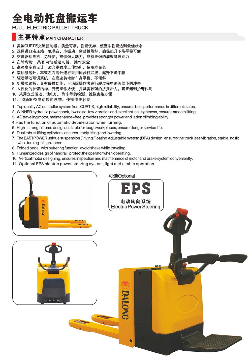 無錫大隆電工機械有限公司主營電動叉車,手動搬運車,電動堆垛車,電動搬運車等,規(guī)格達(dá)上百種,多次通過國家質(zhì)量技術(shù)監(jiān)督部門的質(zhì)量鑒定,信譽高,值得選購!