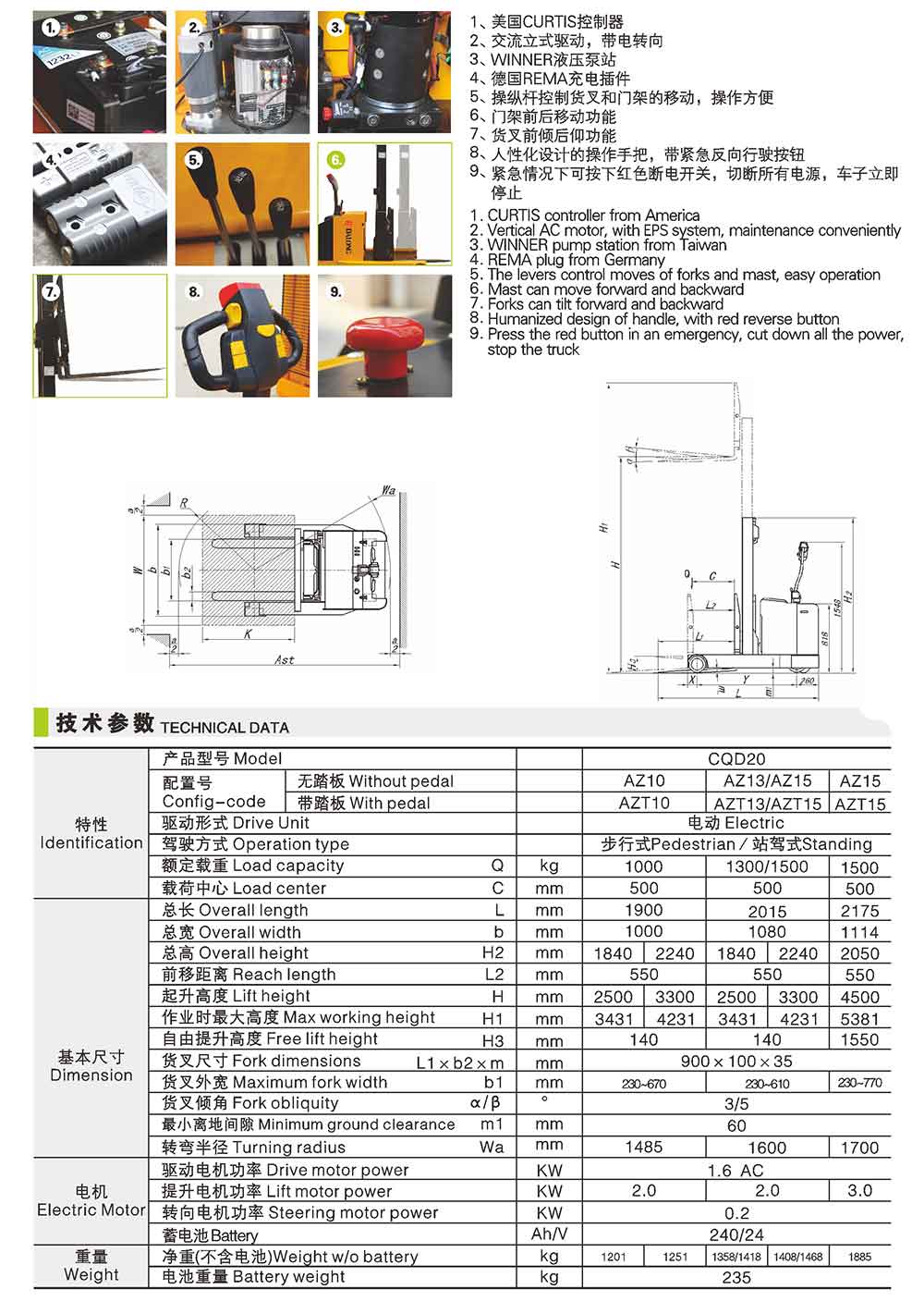 CQDAZ站駕式前移式叉車1T-2T