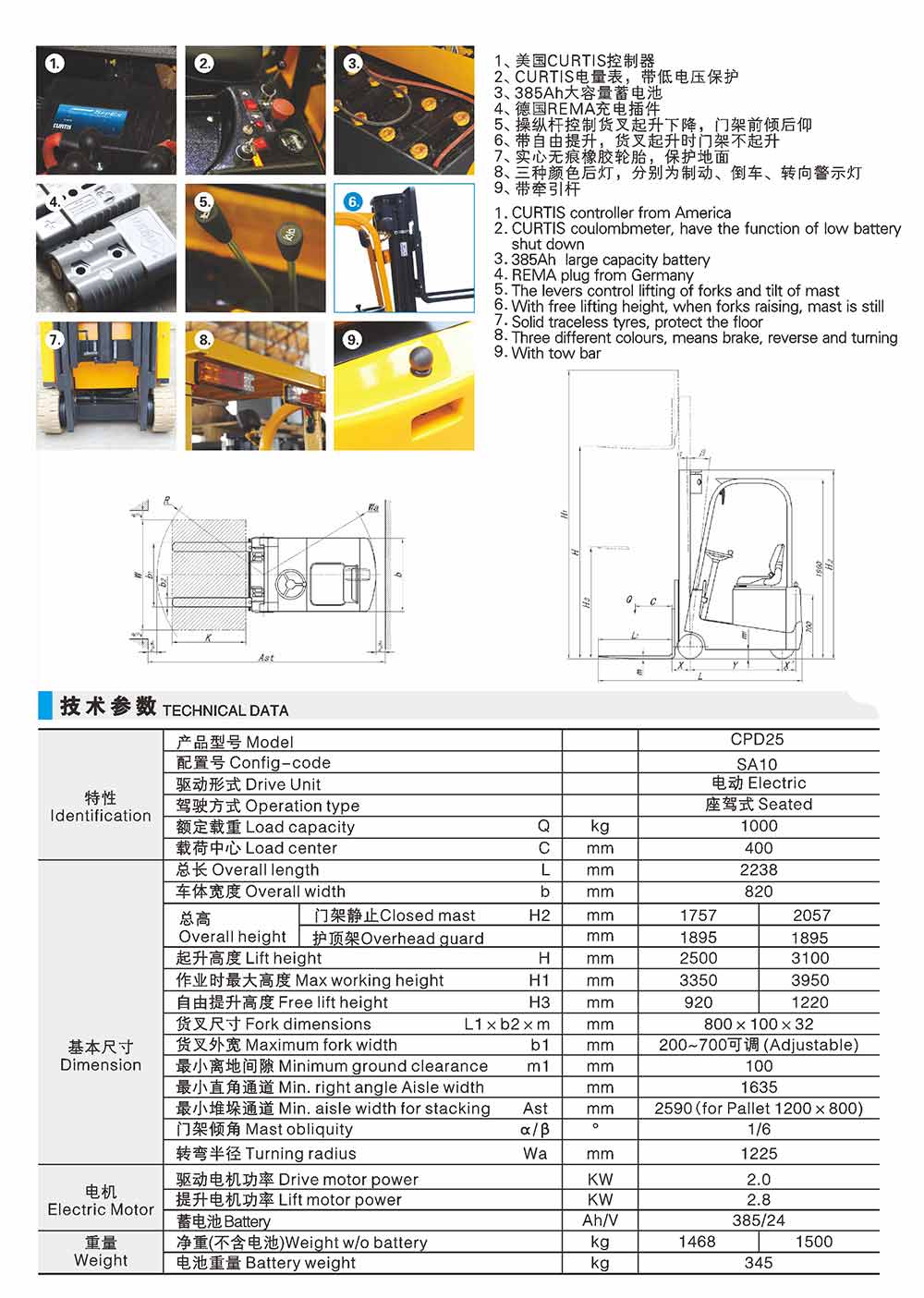 CPDSA三支點電動叉車1T